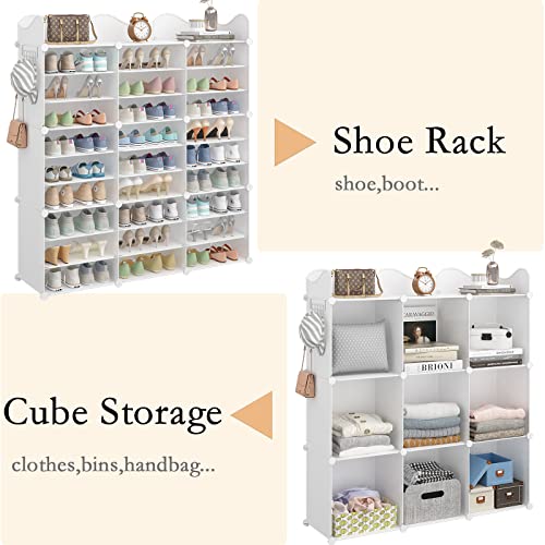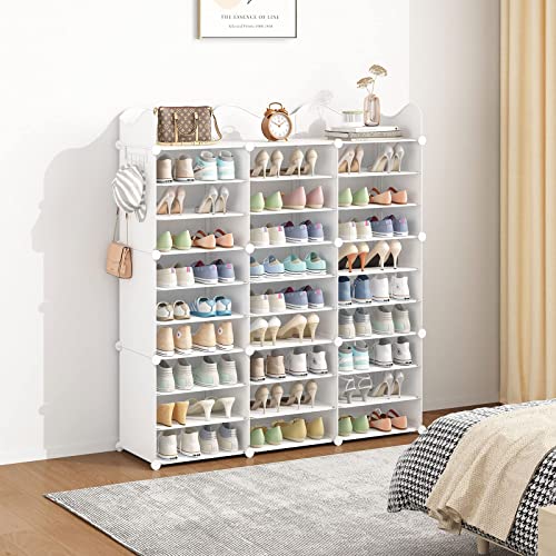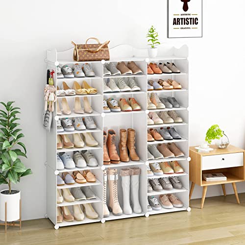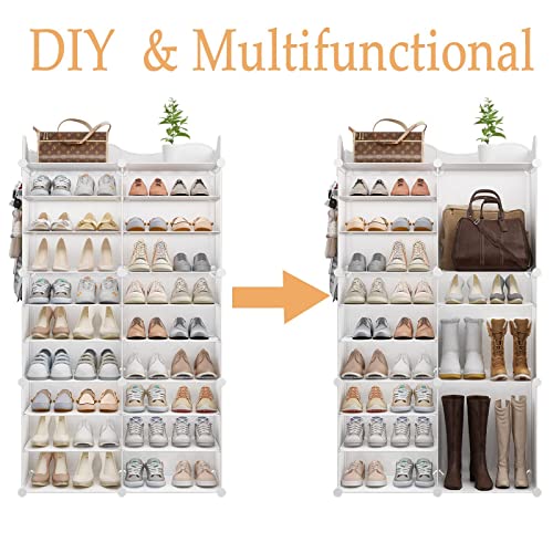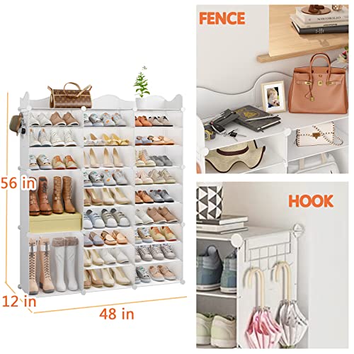 Aeitc 54-Pair Portable Shoe Rack Plastic , DIY Shoe Storage Shelf Organizer for Entryway Shoe Cabinet , White